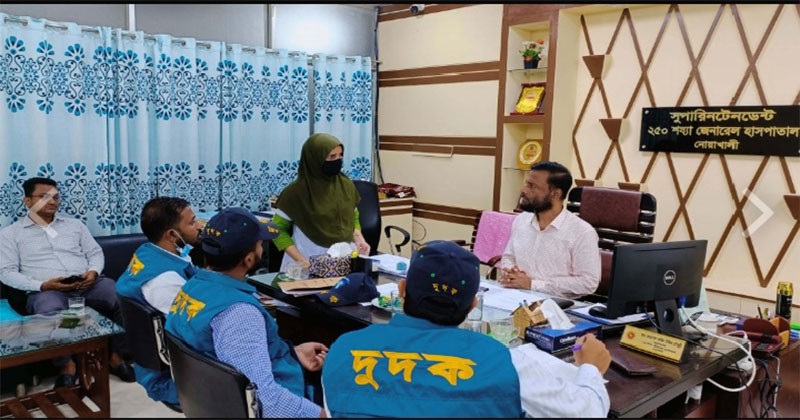 জানা গেছে , নোয়াখালী ২৫০ শয্যাবিশিষ্ট জেনারেল হাসপাতালে চিকিৎসা সেবায় নানাবিধ হয়রানি ও অনিয়মের অভিযোগের পরিপ্রেক্ষিতে দুপুরে দুর্নীতি দমন কমিশনের (দুদক) সমন্বিত জেলা কার্যালয় নোয়াখালী থেকে একটি এনফোর্সমেন্ট টিম অভিযান পরিচালনা করে। অভিযানের সময় হাসপাতালের বিভিন্ন ওয়ার্ড ঘুরে রোগীদের ওষুধ সরবরাহ, ডায়ালাইসিস সেবা এবং মেডিক্যাল টেস্ট সঠিকভাবে দেয়া হচ্ছে কিনা তা সরেজমিনে পর্যবেক্ষণ করা হয়। পাশাপাশি সেবার মানোন্নয়ন ও স্বচ্ছতা নিশ্চিতে হাসপাতালের তত্ত্বাবধায়ককে প্রয়োজনীয় পরামর্শ দেয়া হয়।