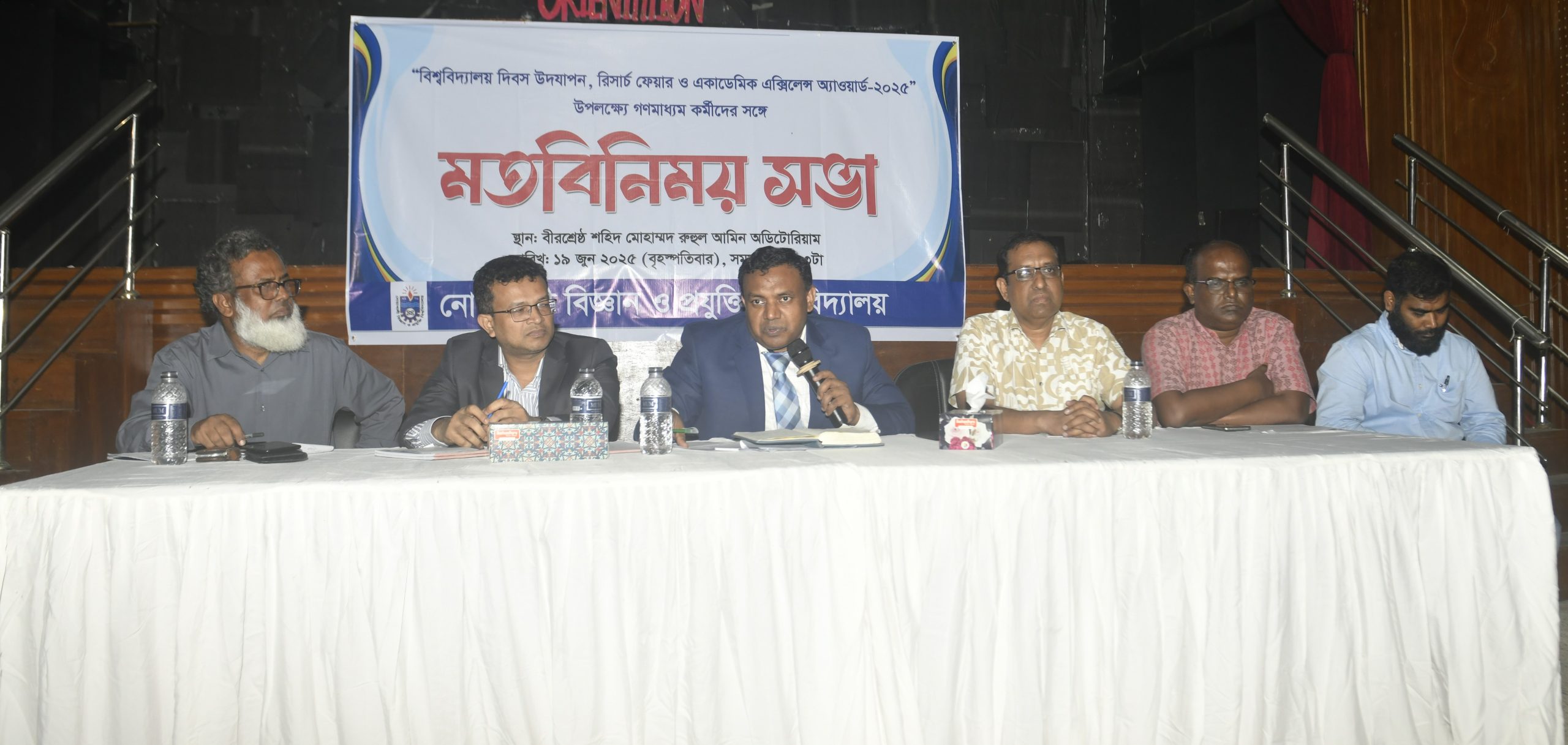 জনসংযোগ ও প্রকাশনা দপ্তরের পরিচালক (ভারপ্রাপ্ত) অধ্যাপক ড. গাজী মো. মহসিনের সঞ্চালনায় মতবিনিময় সভায় আরও বক্তব্য রাখেন বিশ্ববিদ্যালয়ের উপ-উপাচার্য অধ্যাপক ড. মোহাম্মদ রেজওয়ানুল হক, কোষাধ্যক্ষ অধ্যাপক ড. মোহাম্মদ হানিফ, রিসার্চ সেলের পরিচালক অধ্যাপক ড. মুহাম্মদ শফিকুল ইসলাম এবং ছাত্র পরামর্শ ও নির্দেশনা বিভাগের পরিচালক ড. মোঃ শিবলুর রহমান। এসময় নোবিপ্রবি ও নোয়াখালীর সাংবাদিকবৃন্দ উপস্থিত ছিলেন।