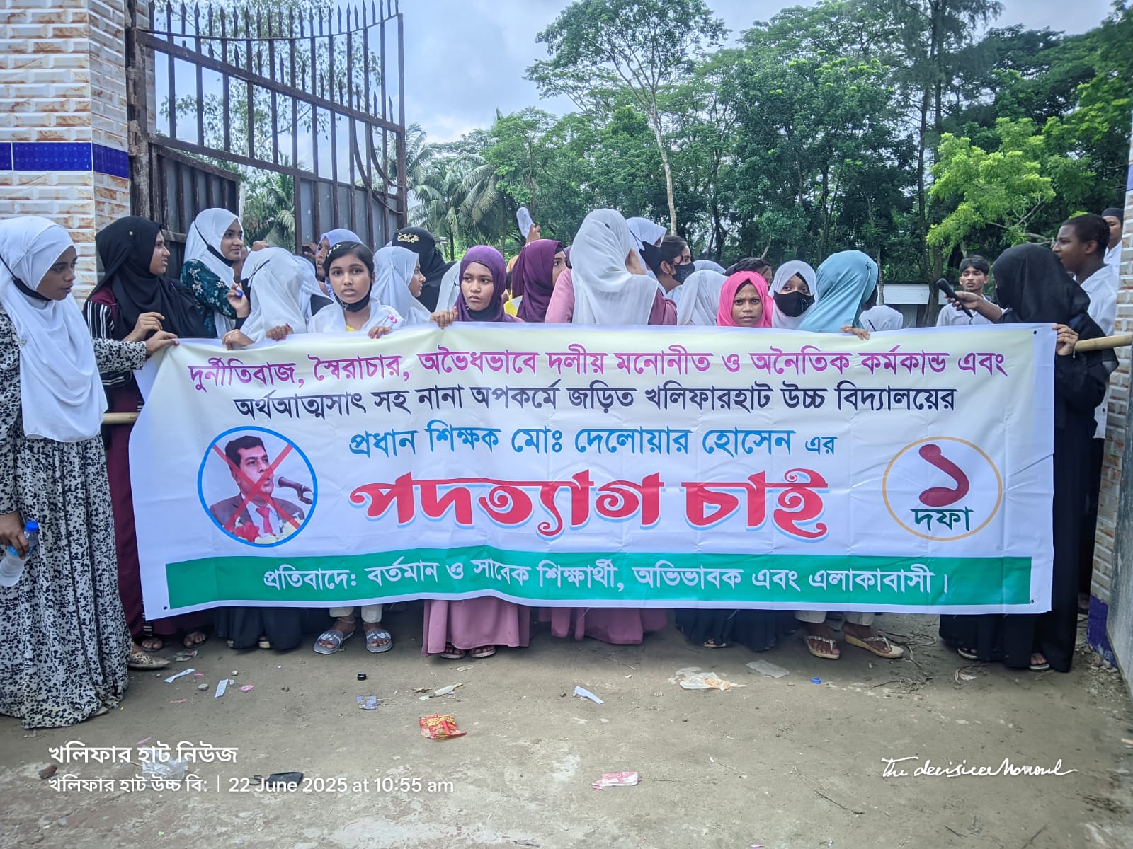 প্রধান শিক্ষক দেলোয়ারের পদত্যাগের দাবিতে শিক্ষার্থী ও অভিভাবকদের বিক্ষোভ-