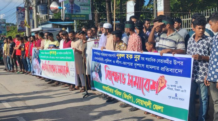 ৩০ আগস্ট (শনিবার), ঢাকায় গণঅধিকার পরিষদের সভাপতি নুরুল হক নূর ও দলটির নেতাকর্মীদের ওপর হামলার প্রতিবাদে নোয়াখালীতে মানববন্ধন ও বিক্ষোভ সমাবেশ অনুষ্ঠিত হয়েছে।
