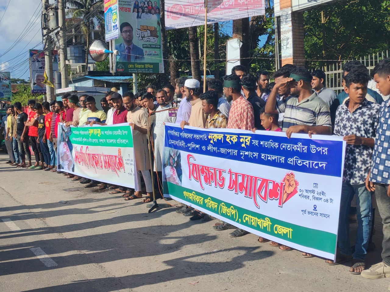 ৩০ আগস্ট (শনিবার), ঢাকায় গণঅধিকার পরিষদের সভাপতি নুরুল হক নূর ও দলটির নেতাকর্মীদের ওপর হামলার প্রতিবাদে নোয়াখালীতে মানববন্ধন ও বিক্ষোভ সমাবেশ অনুষ্ঠিত হয়েছে।