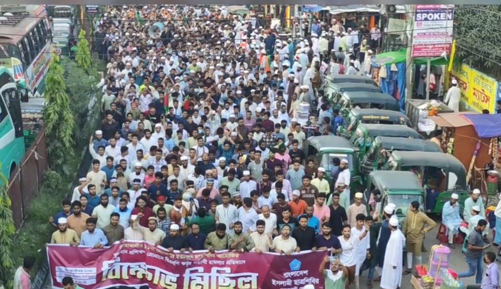 রোববার (১৯ অক্টোবর) বিকেলে নোয়াখালী জেলার সদর উপজেলার নেয়াজপুর ইউনিয়নে কাশেমবাজার জামে মসজিদে ছাত্রশিবিরের দারসুল কোরআনে বিএনপির নেতাকর্মীদের হামলার অভিযোগ তুলে এর প্রতিবাদে ছাত্রশিবির বিক্ষোভ মিছিল ও সমাবেশ করেছে।