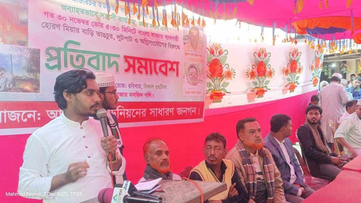সমাবেশে বাংলা বাজার ব্যবসায়ী সমিতির সভাপতি আবু সুফিয়ান, সাধারণ সম্পাদক ডা. আলী আহম্মদ রাশেদ, জামায়াতে ইসলামীর যুববিভাগের সেক্রেটারি রাশেদুল ইসলাম ভূঁইয়া, এনসিপির কেন্দ্রীয় সদস্য তুহিন ইমরানসহ স্থানীয় ব্যবসায়ী এবং গণমানুষ উপস্থিত ছিলেন।
