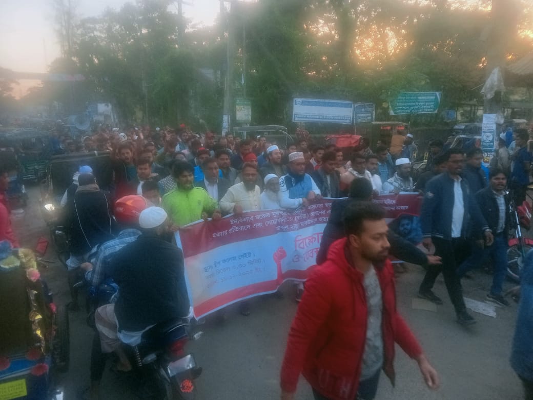 শুক্রবার(১৯ ডিসেম্বর) সন্ধ্যায় উপজেলার ডাকবাংলো থেকে বিক্ষোভ মিছিলটি শুরু হয়ে শহর জিরো পয়েন্ট প্রদক্ষিণ করে থানার সামনে গিয়ে শেষ হয়।