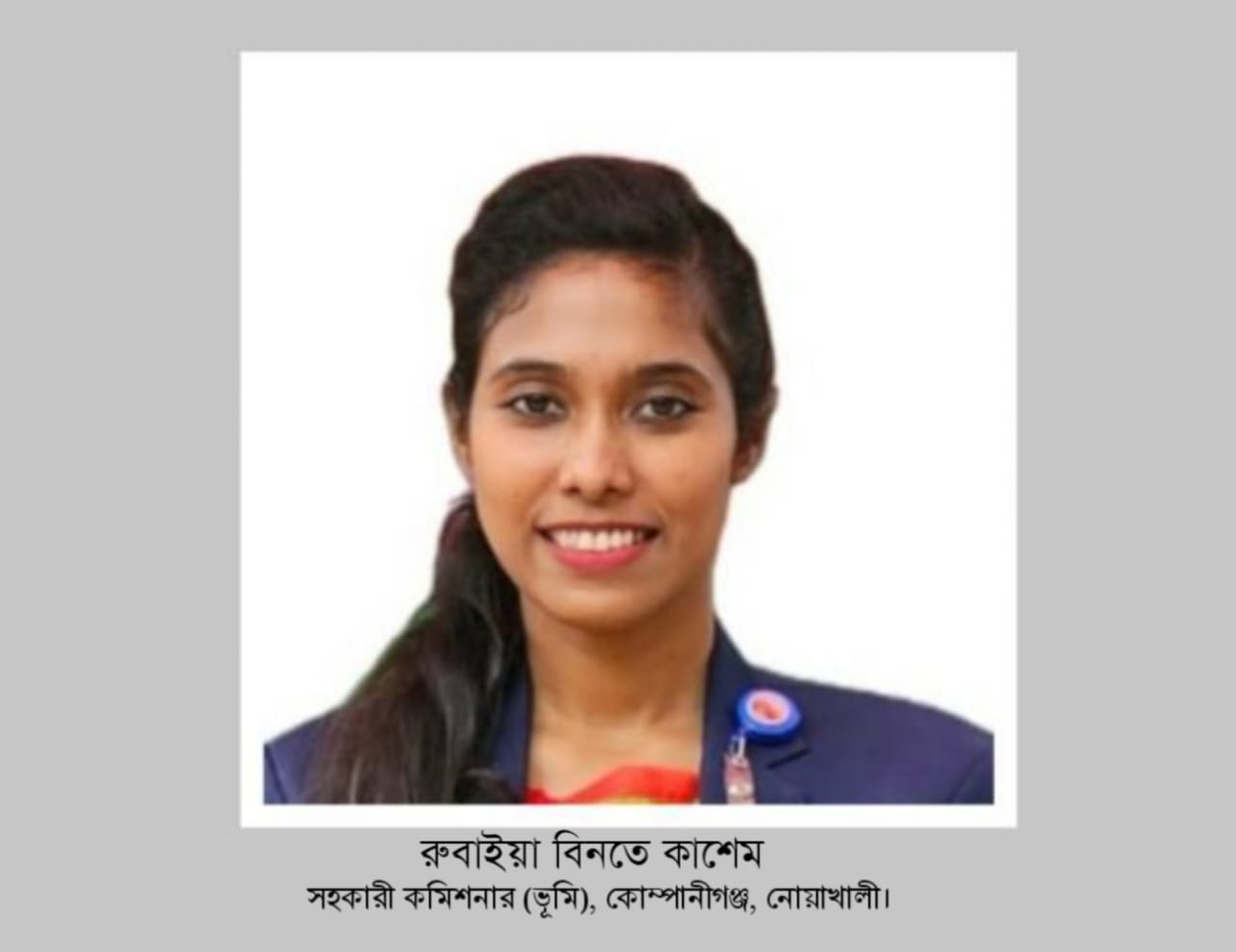 বিভিন্ন শ্রেণি পেশার মানুষের কাছে সহকারী কমিশনার (ভূমি) রুবাইয়া বিনতে কাশেম একজন সৎ, দক্ষ ও কর্মনিষ্ঠ অফিসার হিসেবে পরিচিতি লাভ করেন। মাত্র চার মাসে অফিসের বিভিন্ন উন্নয়নমূলক কর্মকান্ডসহ উপজেলা প্রশাসনের একজন সাহসী নারী অফিসার হিসেবে সুনাম কুড়িয়েছেন তিনি। প্রযুক্তির যথাযথ ব্যবহারের মাধ্যমে ভূমি রেকর্ড ব্যবস্থাপনা ও নামজারিসহ অন্যান্য সেবা এখন খুব সহজেই পেয়ে যাচ্ছেন সেবা প্রত্যাশিরা। সর্বোচ্চ ২৮ দিনের মধ্যেই অবৈধ লেনদেন ছাড়াই সমাধান হচ্ছে নামজারির আবেদন। খাল ও সরকারি সম্পত্তি দখলের বিরুদ্ধে করেছেন একাধিক অভিযান। মাটি ও বালু খেকোদের বিরুদ্ধে করছেন প্রতিনিয়ত আপোষহীন মোবাইল কোর্ট। যেখানেই অভিযোগ দিনে রাতে ছুটে যাচ্ছেন তিনি। সপ্তাহে একদিন মিসকেইস শুনানির কথা থাকলেও প্রায় প্রতিদিনি শুনানি হচ্ছে মিসকেইস।