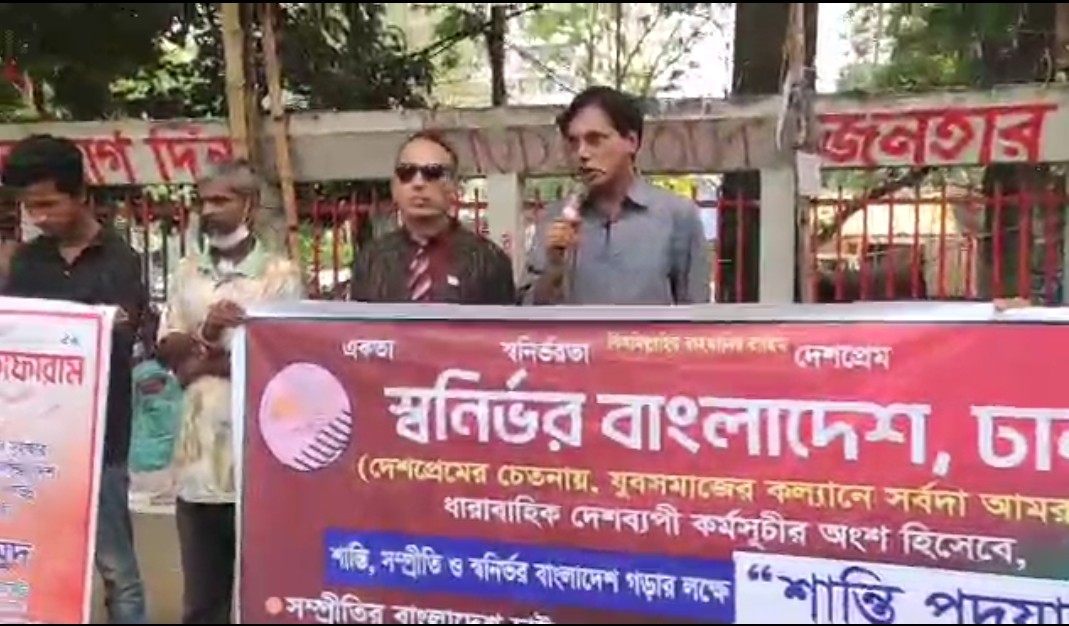 বৃহস্পতিবার ১৬ এপ্রিল বিকালে ঢাকা জাতীয় প্রেসক্লাবের সামনে স্বনির্ভর বাংলাদেশ একটি মানববন্ধন করেন।